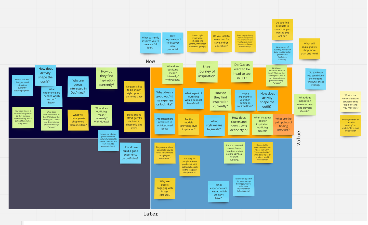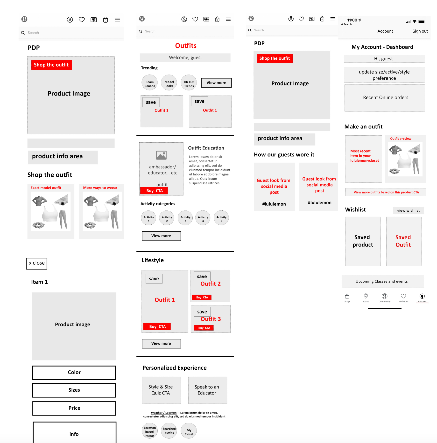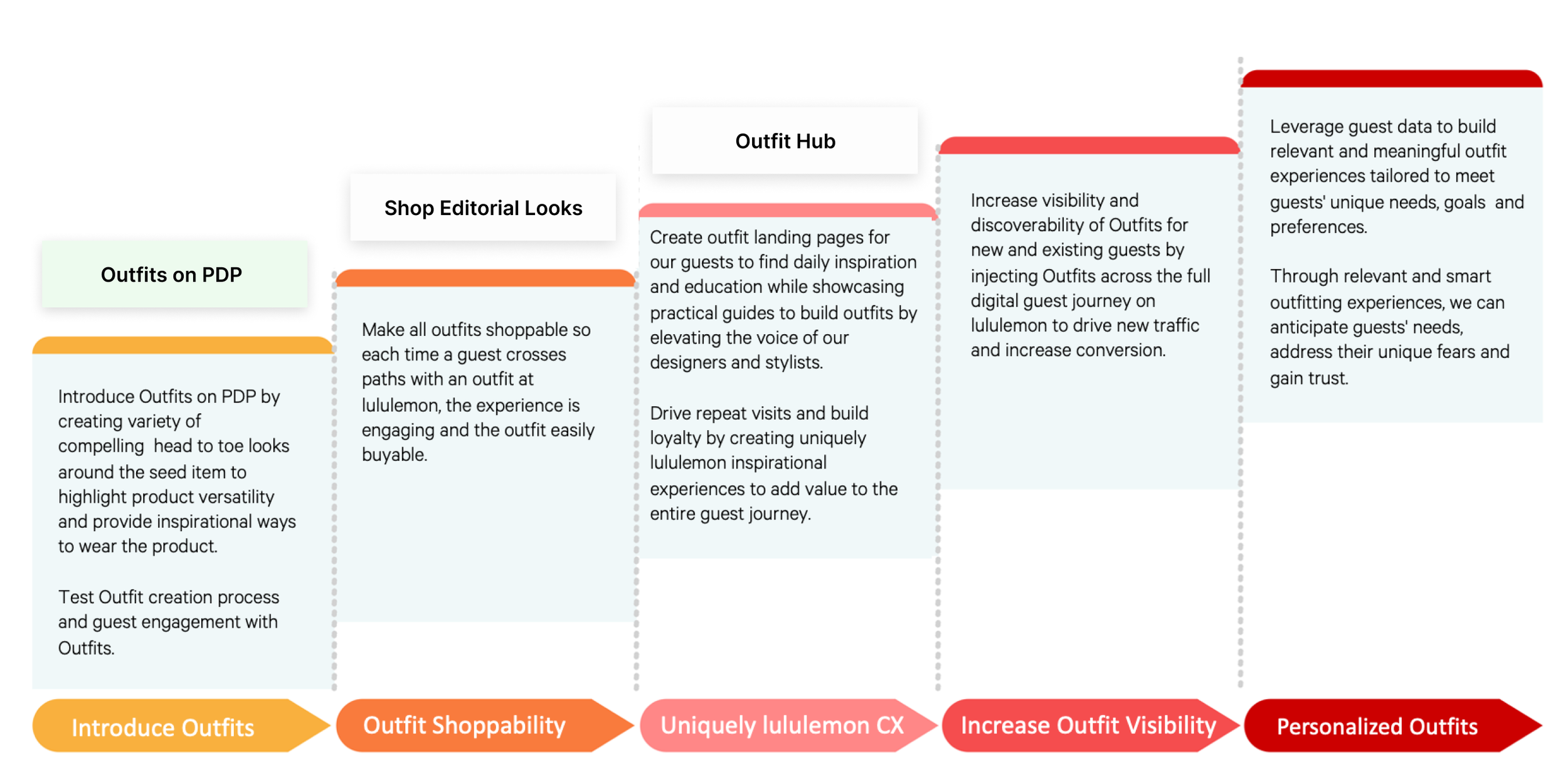 After getting alignment from leadership, we broke down the experiences into a roadmap to provide a clear path forward for how outfits will evolve through the lululemon shopping journey.