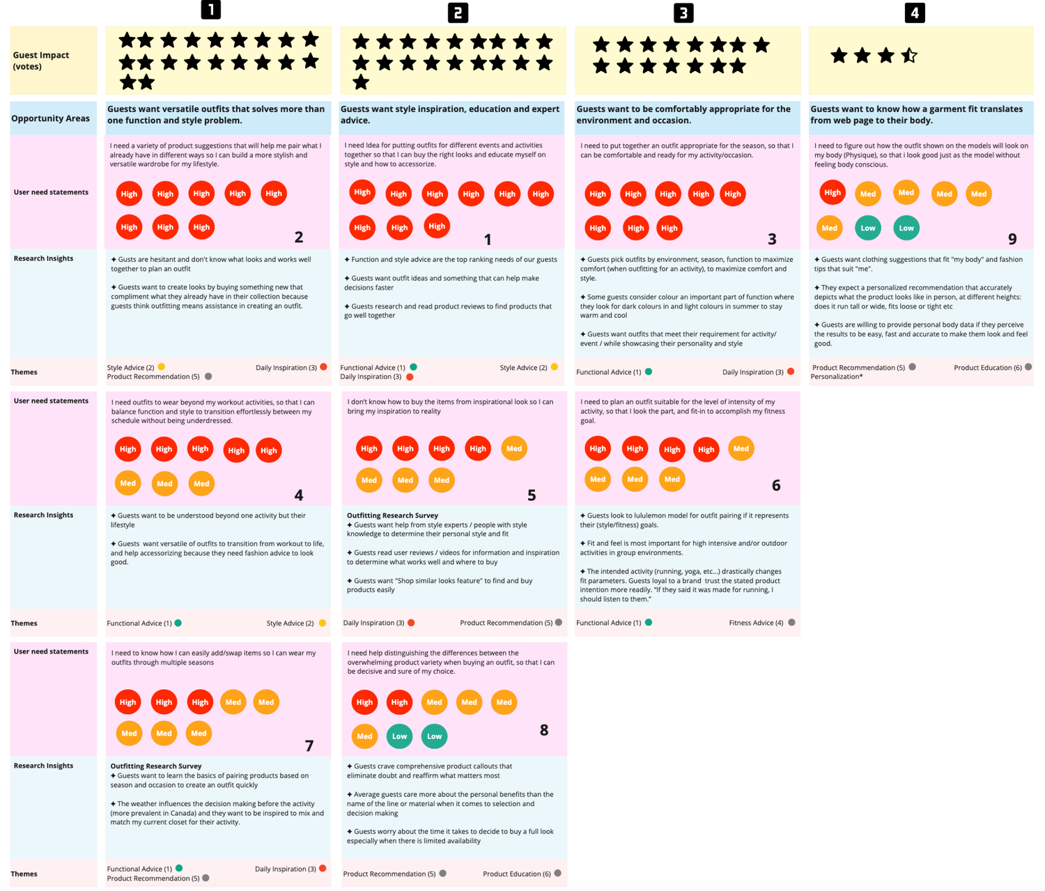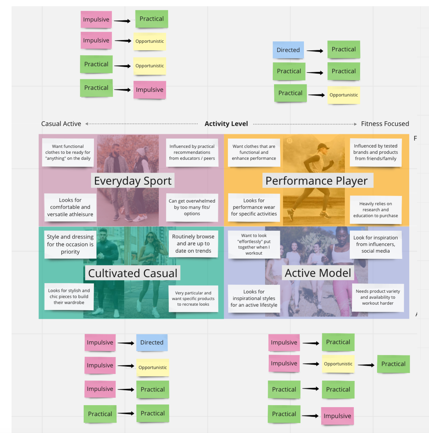 Crafting Guest Archetype — To valid the problem, we crafted did a breakdown of the different types of guest that shop athleisure wear. This would shape the kinds of questions to prioritize in research to get relevant answer.